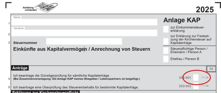 Über die Steuererklärung lässt sich dann der ungenutzte Teil des Freibetrags auf den anderen Partner übertragen und die zu viel gezahlte Einkommensteuer zurückholen. Dafür muss jeder Partner eine Anlage KAP ausfüllen und dort die Werte aus den Jahressteuerbescheinigungen eintragen. Das Finanzamt prüft dann, ob die Bank zu viel einbehalten hat. Wenn ja, gibt es eine Steuergutschrift.
