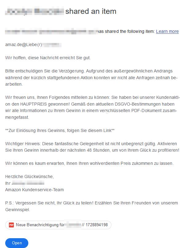 Wir freuen uns, Ihnen Folgendes mitteilen zu können: Sie haben bei unserer Kundenaktion den HAUPTPREIS gewonnen! Gemäß den aktuellen DSGVO-Bestimmungen haben wir alle Informationen zu Ihrem Gewinn in einem verschlüsselten PDF-Dokument zusammengefasst.