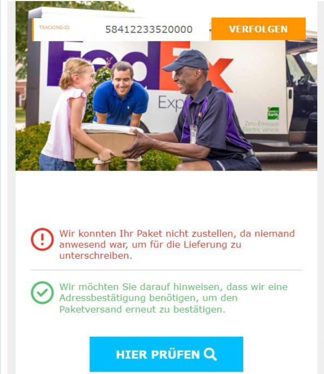 Während der Markenname DHL / Deutsche Post schon mehrere Jahre missbräuchlich verwendet wird, sind Fedex und Hermes relativ neu. Doch was bezwecken die Betrüger mit dieser Nachricht? Am Ende kann die Aktion auf verschiedene Dinge hinauslaufen – je nachdem, auf welche Webseiten Sie von dem Initiator geleitet werden.