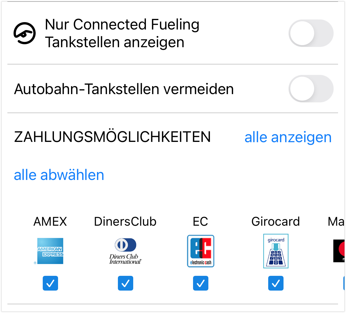 Eine dieser Gratis-Apps für Android und iOS ist „Mehr-Tanken”. In der Anwendung für Ihr Smartphone oder Tablet stellen Sie ein, in welchem Radius Sie Tankstellen suchen möchten. Zusätzlich filtern Sie nach Ihrer gewünschten Kraftstoffart. In den Filtern können Sie unter anderem die teuren Autobahntankstellen abwählen, sodass diese Ihnen in der Liste nicht angezeigt werden.